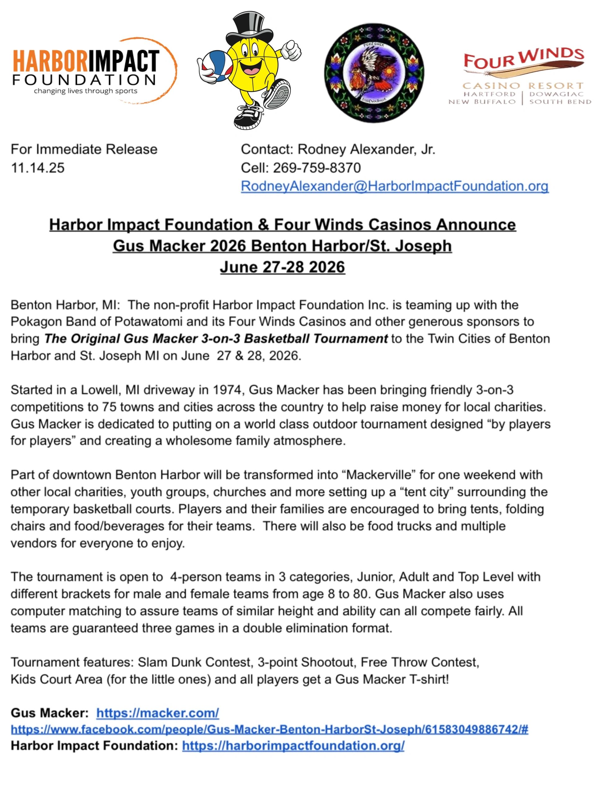 ABC57News coverage of the 2025 Pistons Youth Academy at St. Josepht (MI) High School hosted by the Harbor Impact Foundation, Inc.